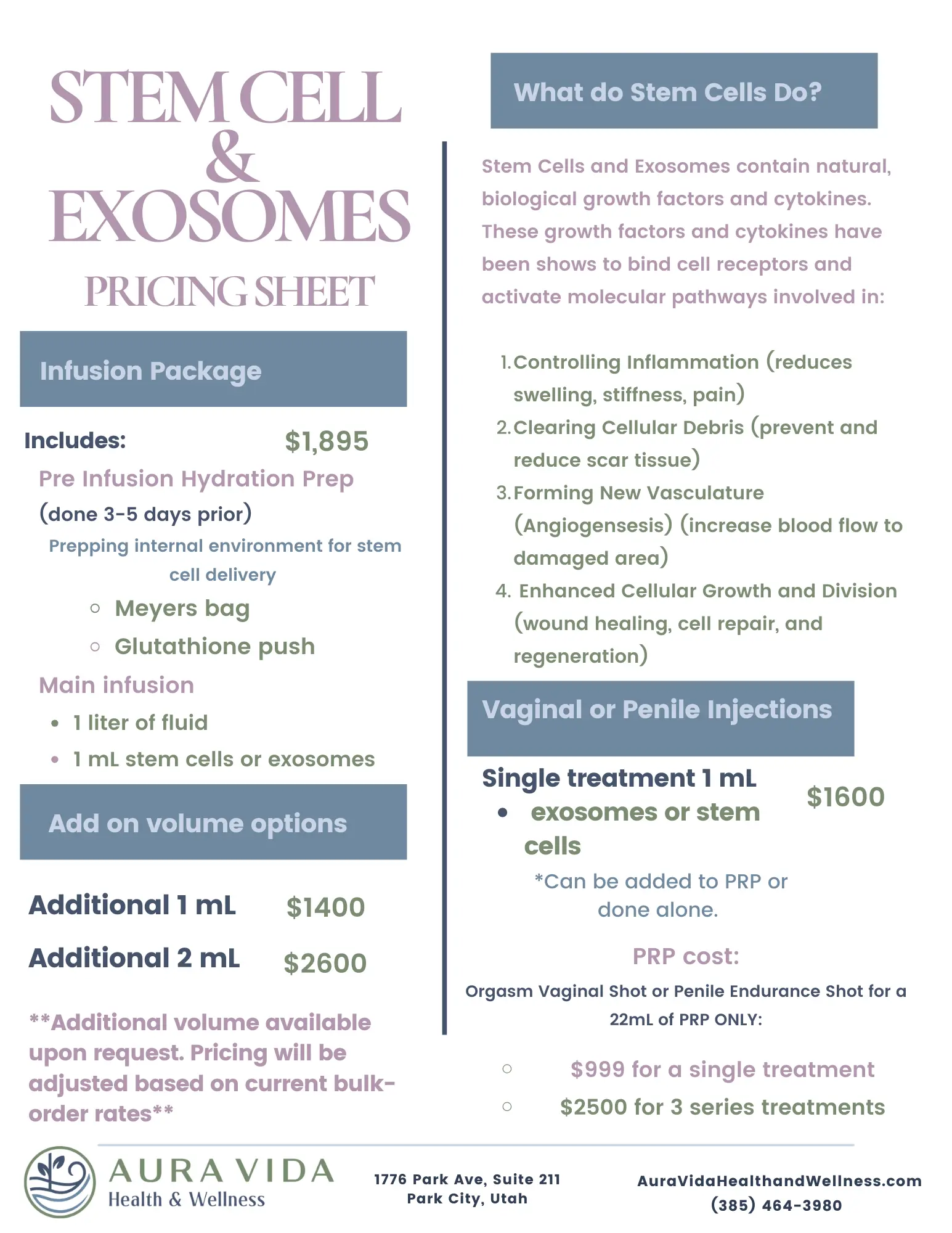 In the United States, only a few stem cell treatments are FDA-approved (e.g., certain bone marrow transplants). Most regenerative stem cell therapies remain experimental and are not formally approved for broad clinical use outside of specific, regulated trials. Aura Vida advises consulting your primary care provider before proceeding.
